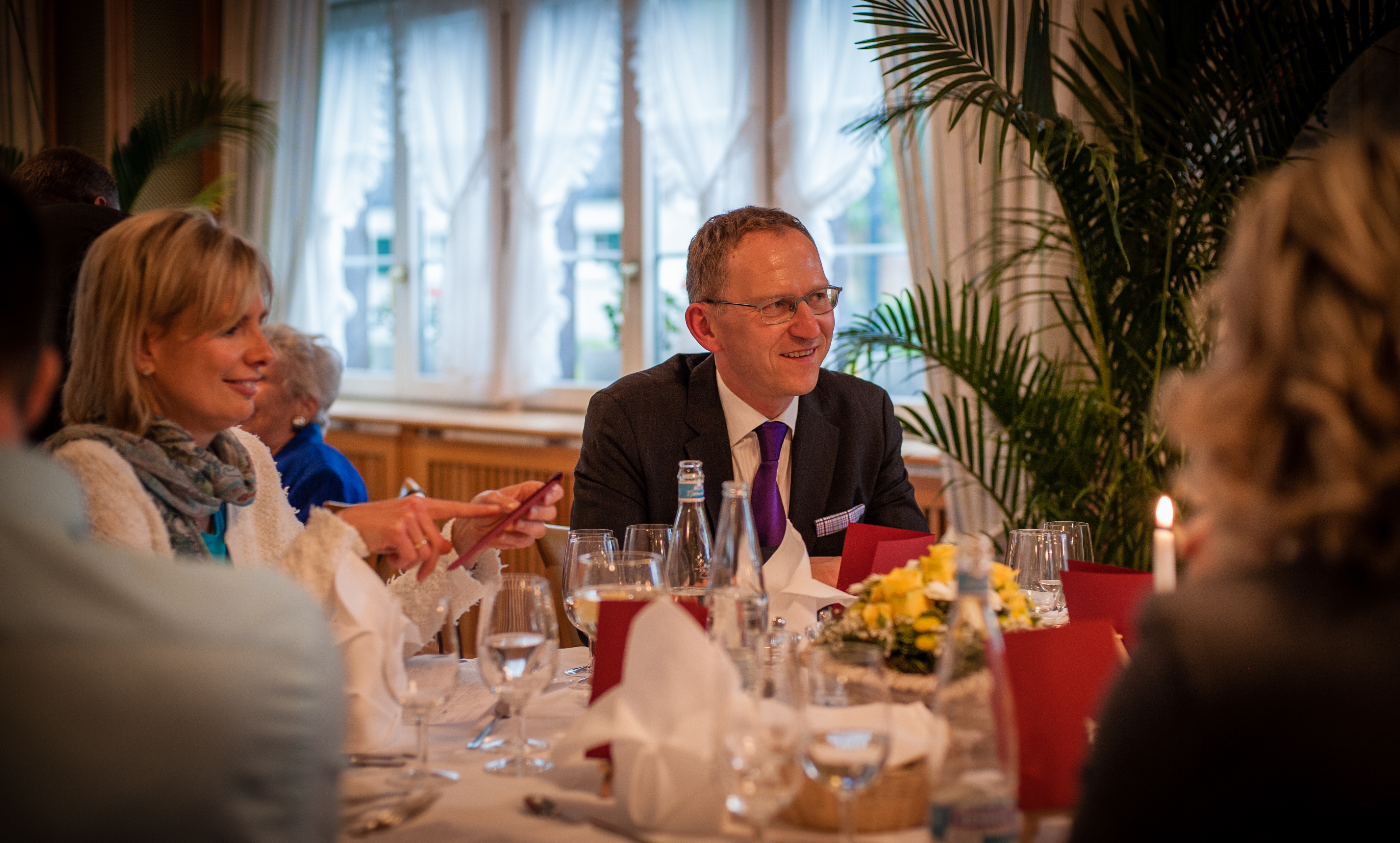 Offenbar ist Monique irgendwie misstrauisch und checkt nochmal ob ihr Name auf der Tischkarte steht. Jürg interessiert sich offenbar nicht für die Nöte seiner Frau.