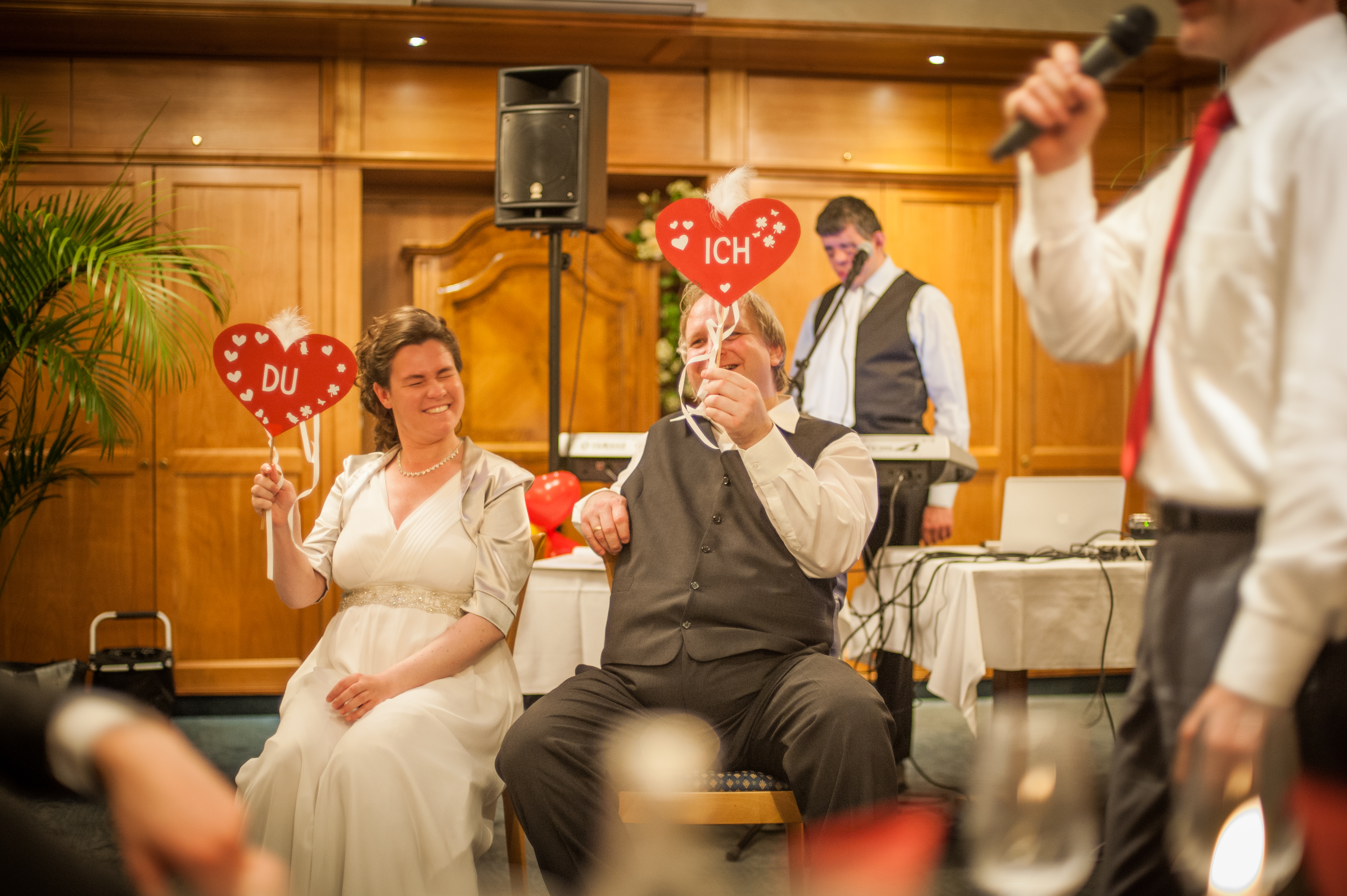 Das Brautpaar ist sich offenbar einig. Dem Gesicht von Diana nach zu schliessen macht es auch Spass. Den hat offenbar auch Lothar. Die Fragen wurden von Erich und Suzette vorgetragen und der Preis ist das Hochzeitsgeschenk der Beiden. Da wir fast alle Fragen zur allgemeinen Zufriedenheit übereinstimmend beantworten konnten, haben wir auch das gesamte Hochzeitsgeschenk erhalten.