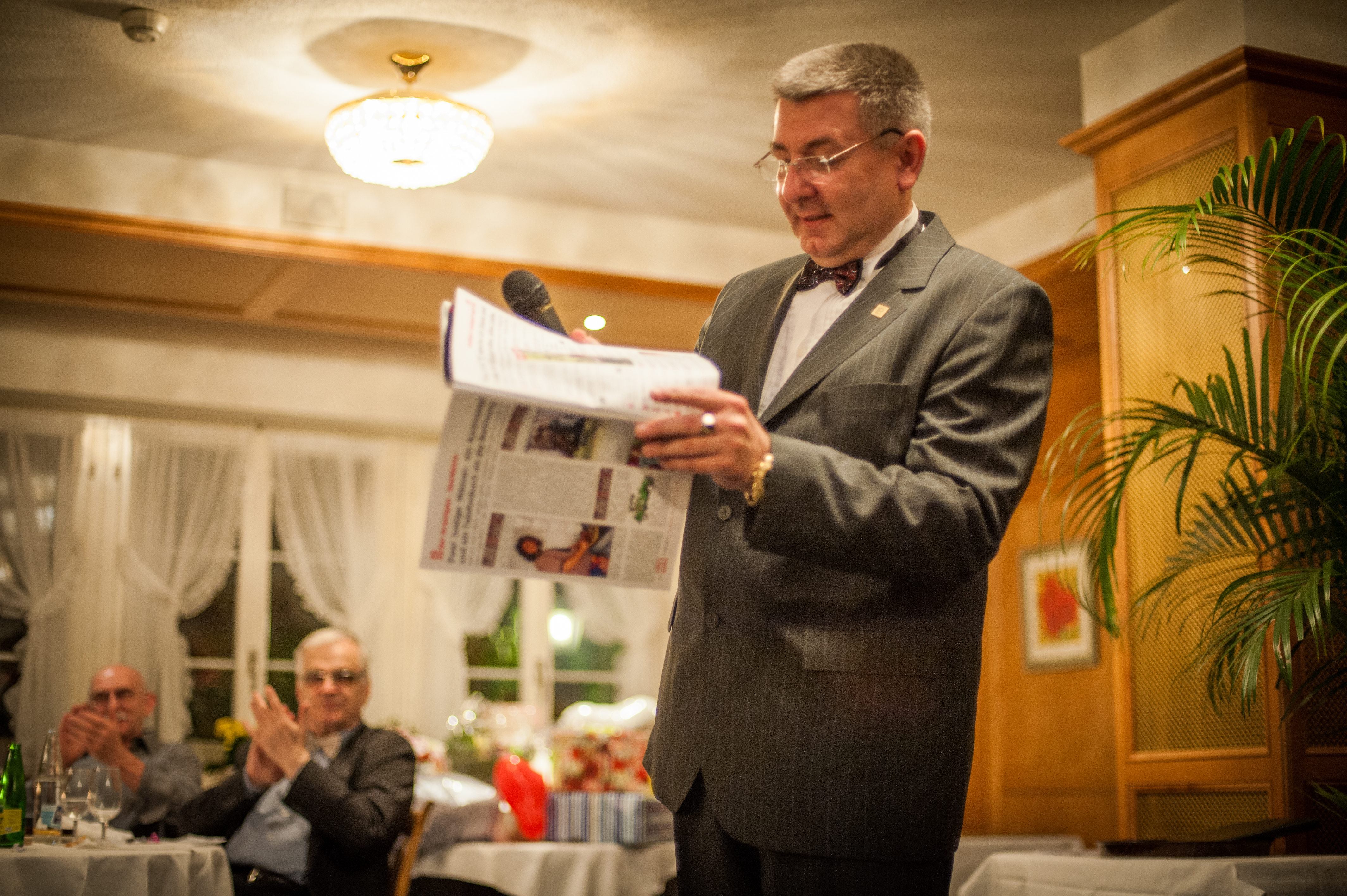 Christoph stellt grad die Hochzeitszeitung vor. Die hat er und Kerstin in sehr aufwändiger Arbeit erstellt. Sie haben alle zugearbeiteten Artikel (und natürlich auch die selbst geschriebenen) redigiert und in eine einzigartige Zeitschrift verwandelt.