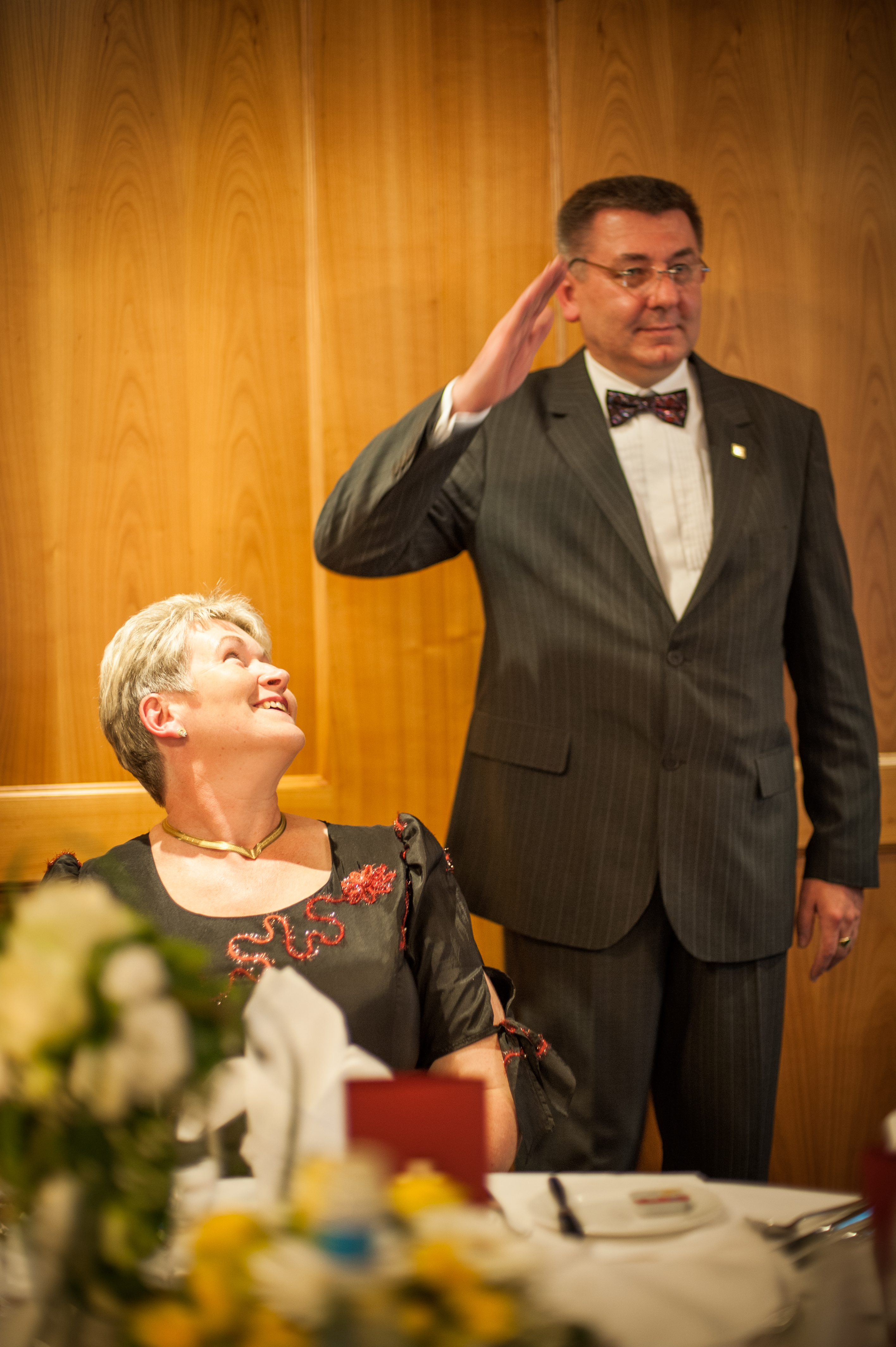 Feldmarschall Seemann nimmt den Dank des Ehepaares entgegen. Kerstin findet das offenbar lustig.