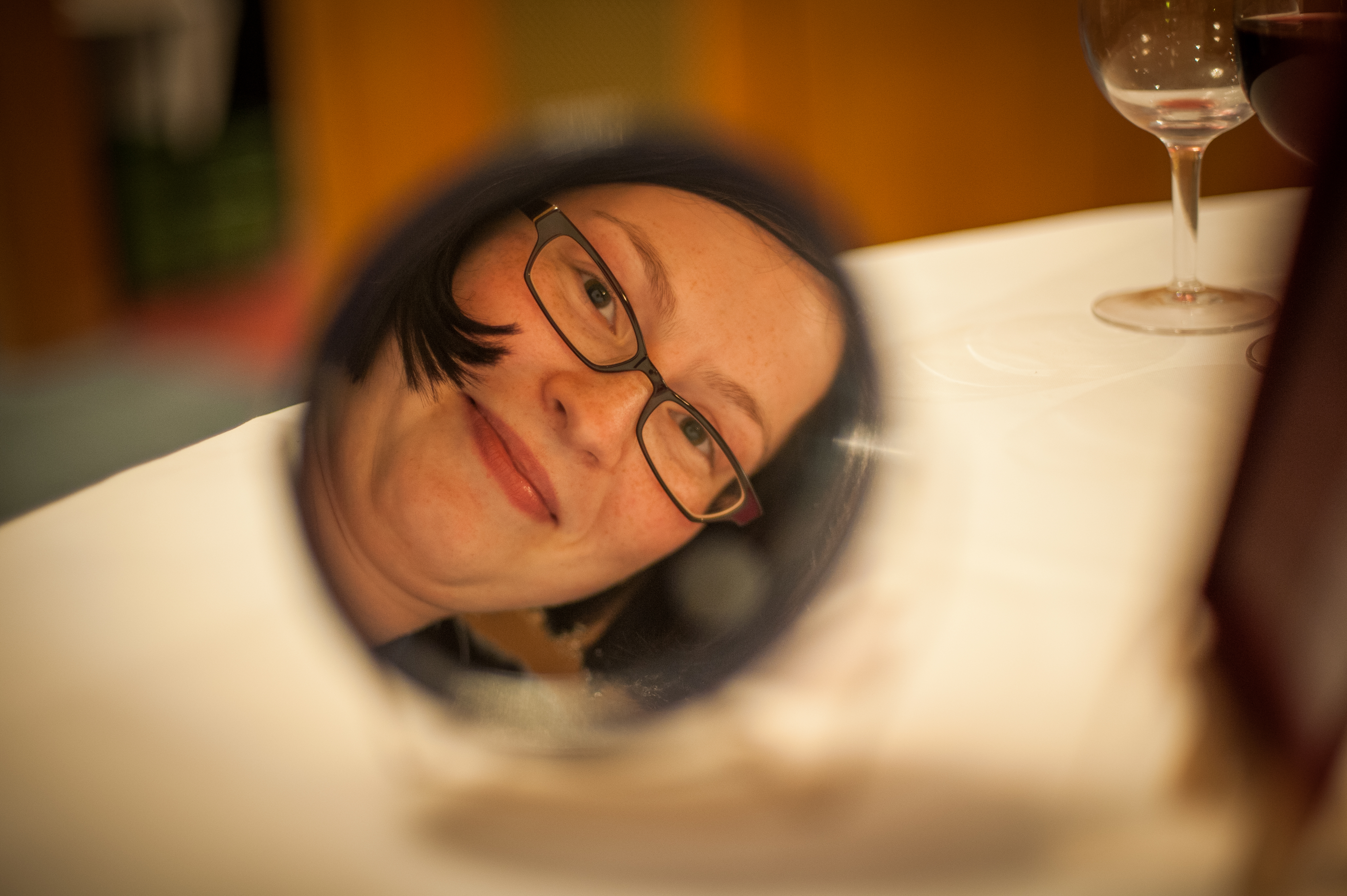 Spieglein, Spieglein in der Hand, wer ist die Schönste im (fremden) Land. Ok, ich gebe zu, der Spiegel steht auf dem Tisch und die Intention von Ulrike ist nicht der Narzissmus - aber es passt trotzdem.