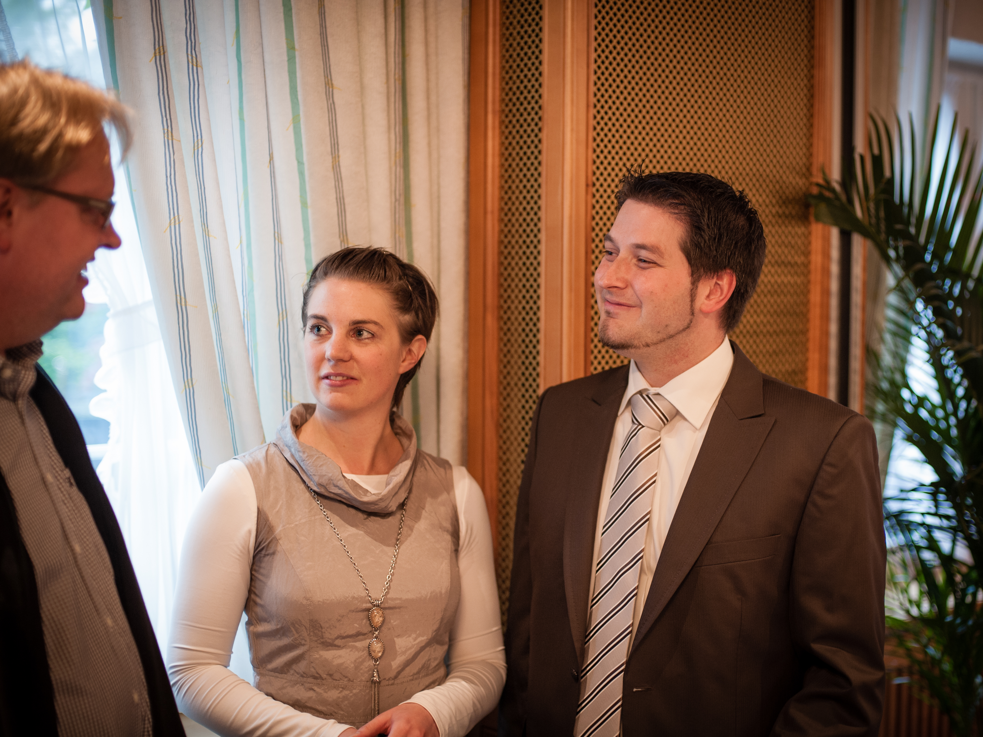 Auch hier macht man sich erst einmal bekannt. Links Manfred in der Mitte Silvia und rechts Julian.